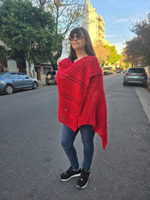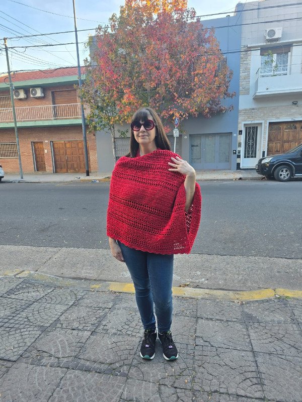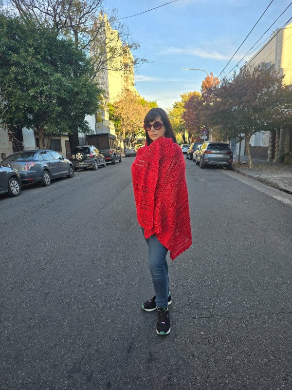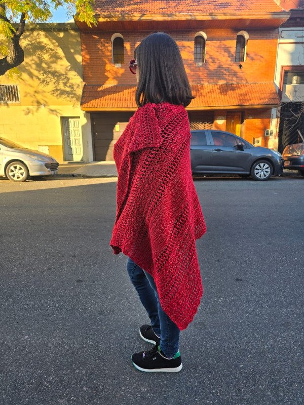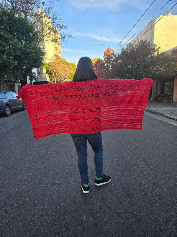 Es una pashmina o chal rectangular que se teje del centro hacia los lados si se teje a lo ancho, o del centro hacia arriba y hacia abajo si se teje a lo largo.
